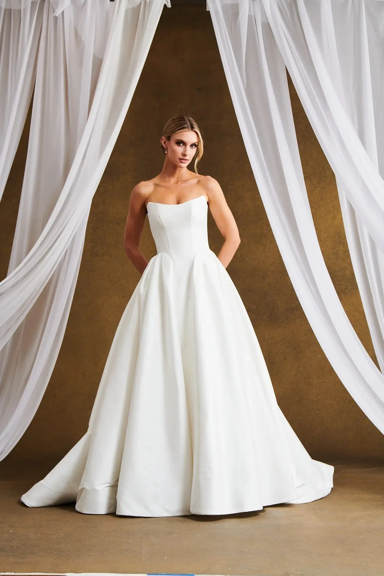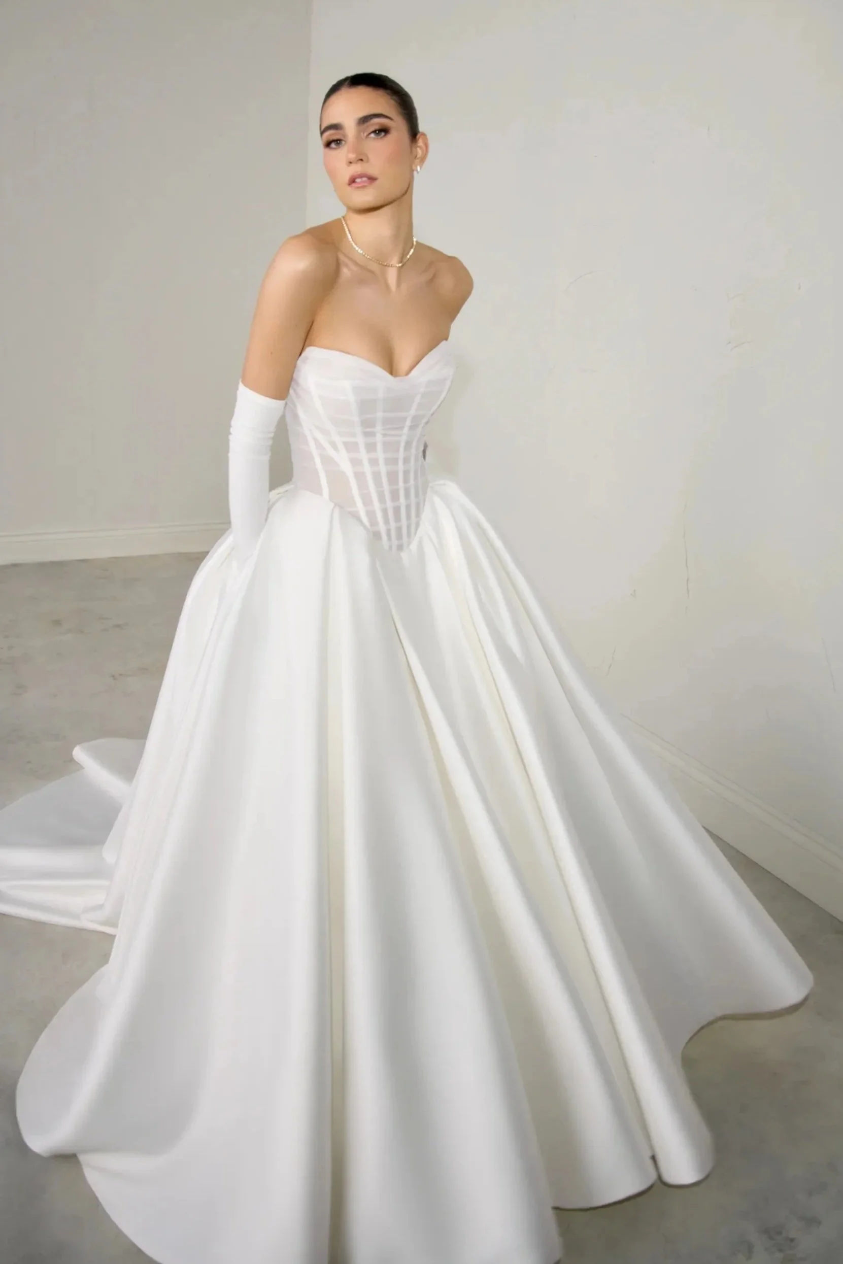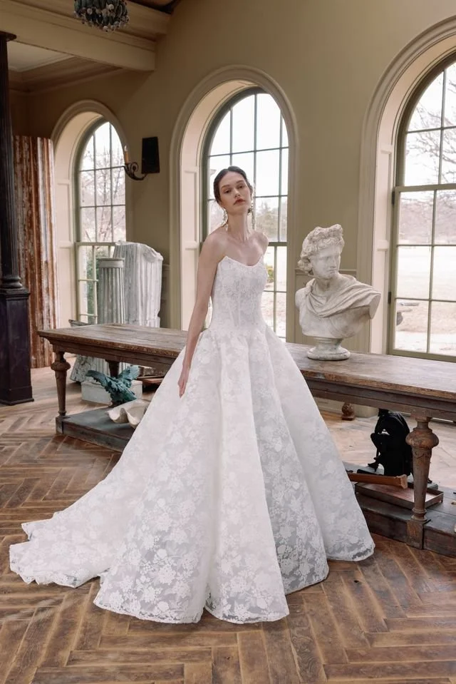 This collection balances sleek minimalism with intricate detail, perfect for the bride who is fashion forward with a traditional twist.